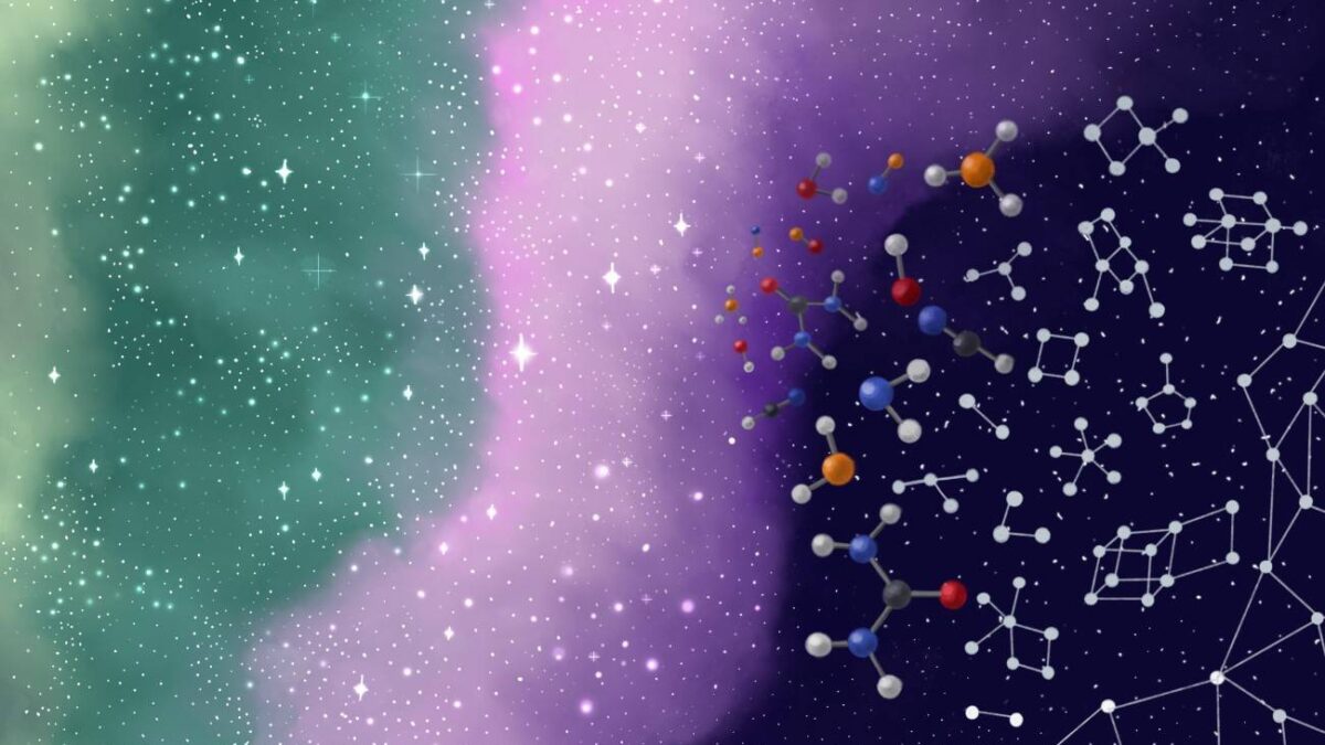 Representación artística de la conexión creada entre la ciencia de la redes complejas y la astroquímica para explicar la emergencia de la complejidad molecular en el espacio | PNAS/Marina Fernández-Ruz (CAB, CSIC-INTA)