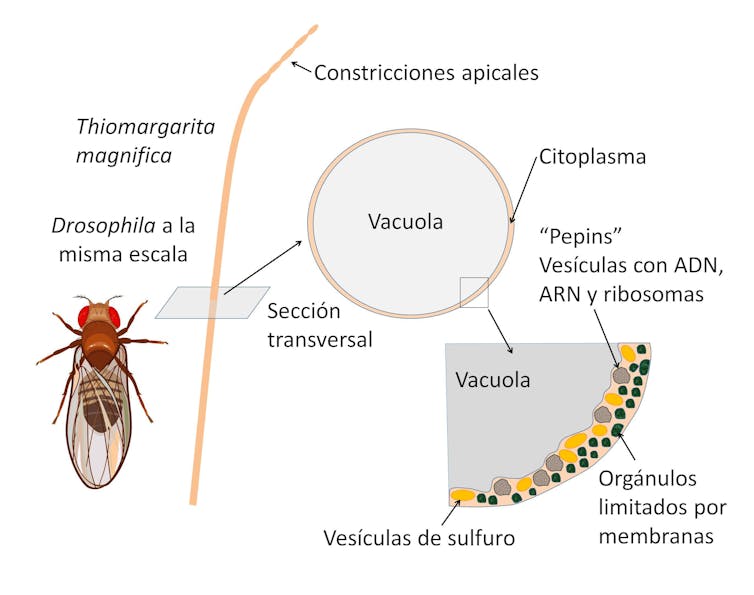 Pero no solo el tamaño de Thiomargarita magnifica sorprende. Veamos.