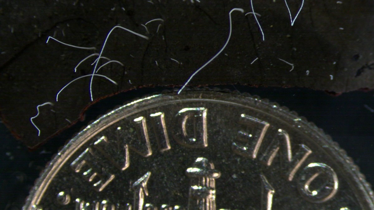 Imagen de la 'Thiomargarita magnifica' comparada con una moneda. | Lawrence Berkeley National Laboratory
