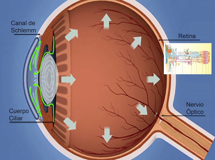 Si las células encargadas de generarlo (cuerpo ciliar) lo hacen por encima de su nivel óptimo o la evacuación encuentra algún impedimento en el proceso de filtrado, entonces aumenta la presión. La pérdida de visión aparece cuando ese empuje se transmite a la retina, la parte nerviosa del ojo –situada en la zona posterior–, y las células que conducen el mensaje visual al cerebro mueren.