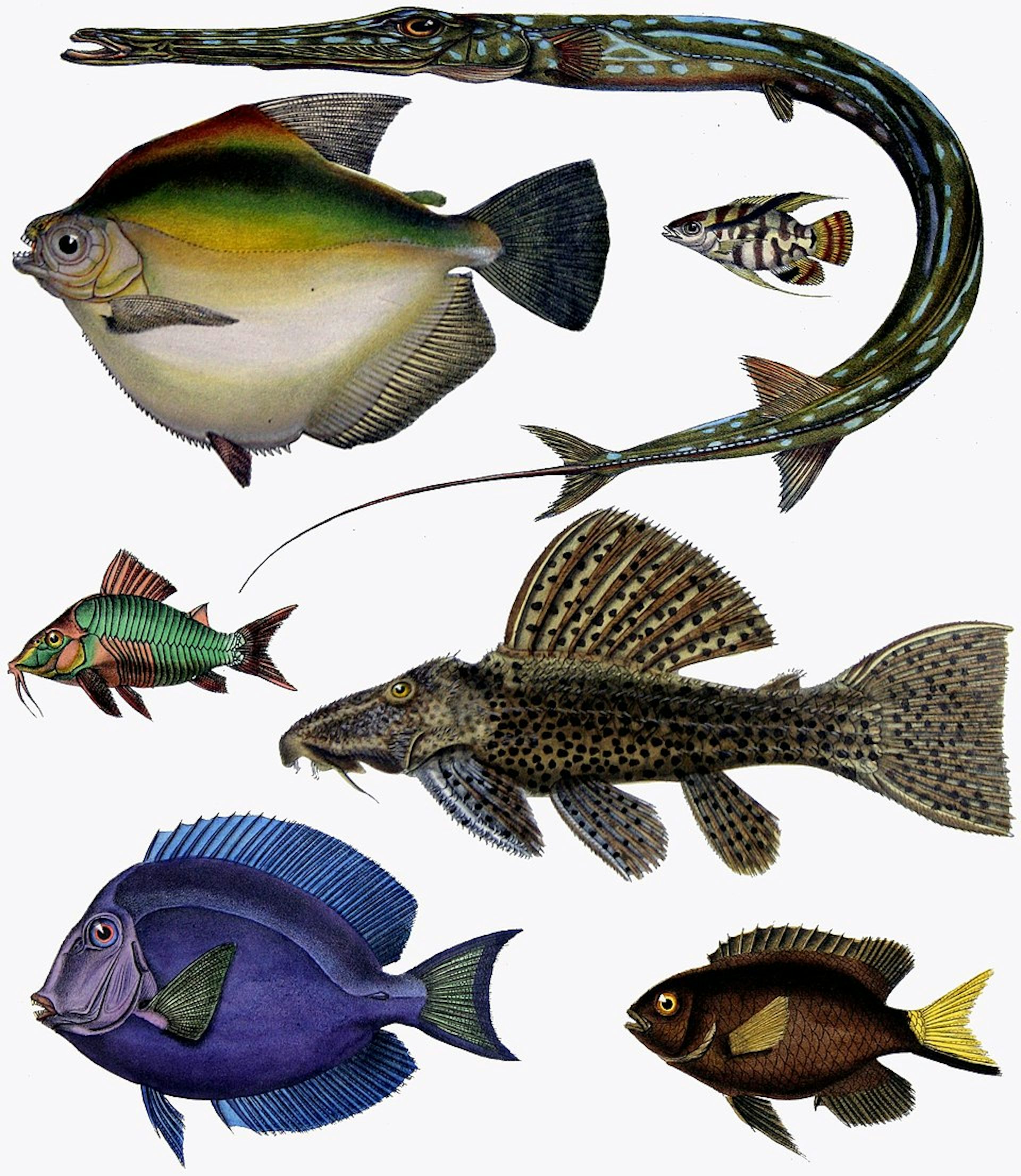 En los peces óseos o teleósteos la diversidad es aún mayor. Este grupo, que incluye desde caballitos de mar hasta meros y salmones, ha experimentado con todas las posibles soluciones dentales.