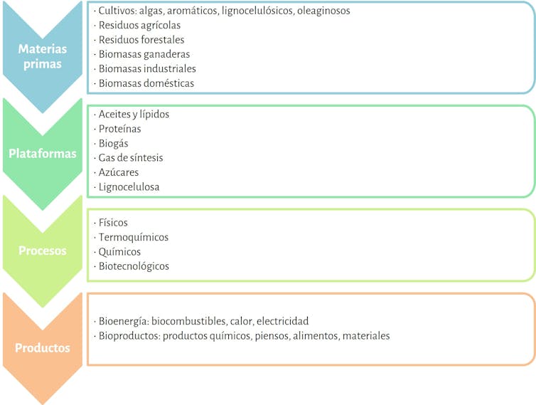 La Estrategia Española de Economía Circular tiene entre sus líneas de actuación la implantación de estas industrias. El objetivo es “desarrollar nuevas cadenas de valor sostenibles basadas en la valorización y aprovechamiento de los residuos generados por distintos sectores…”. Es decir, se pretende usar la biomasa como materia prima, pero solo aquella proveniente de residuos, subproductos o productos secundarios. Se evita así generar competencia con otras actividades productivas del sector primario y, por tanto, el desplazamiento alimentario.