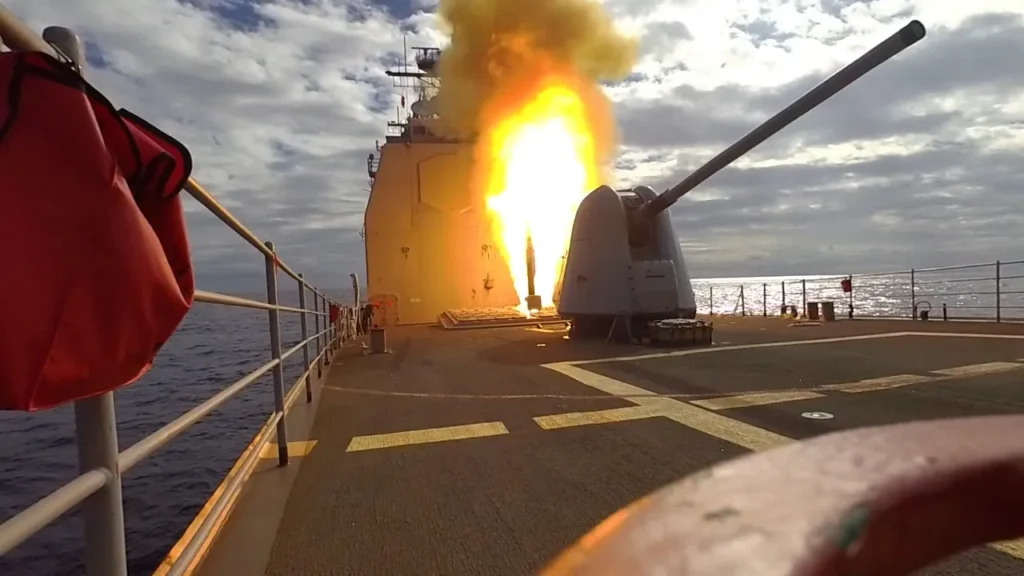 El ritmo de fuego era de tal intensidad que, para defenderse de amenazas entrantes y casi sin misiles, quedaron con el único escudo los sistemas de fuego de sus cañones de cinco pulgadas, que disparan munición de alta velocidad. En alguna ocasión, los buques destinados a esta función, han tenido que salir del teatro de operaciones, para ir a reabastecerse.
