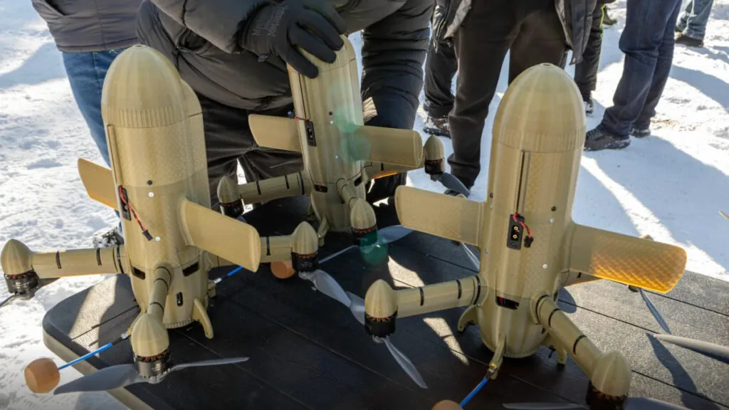 Ese ecosistema industrial ha generado decenas de modelos distintos. Entre ellos destaca el Bullet, un interceptor diseñado para destruir drones Shahed de origen iraní. Su arquitectura resulta peculiar. Despega en vertical como un dron convencional, pivota hacia vuelo horizontal ya en el aire y alcanza velocidades de más de trescientos kilómetros por hora. En la práctica, funciona como un pequeño misil reutilizable destinado a interceptar amenazas antes de que lleguen a ciudades u otras áreas sensibles.
