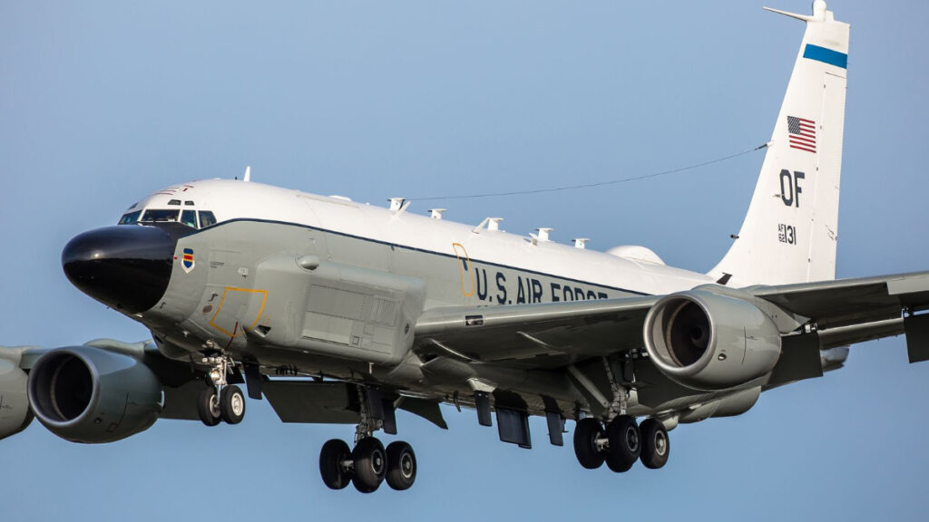 El RC-135 Rivet Joint es un aparato bien conocido, al que se le han renovado sus capacidades en fechas recientes. Sus primeras misiones datan de la guerra de Vietnam, pero de manera cíclica el aparato es vaciado y reequipado para estar a la última en tecnología. Puede interceptar comunicaciones a casi 250 kilómetros, localizar y posicionar radares enemigos y capturar señales en un abanico de frecuencias que nunca se han hecho públicas. Ha sobrevolado la frontera occidental de Rusia, las aguas próximas a China y el Mediterráneo oriental. Su currículo es extenso, y no solo lo tienen en propiedad los estadounidenses, sino también la Royal Air Force británica, la RAF.