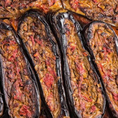 Keyword aceite, Berenjenas, berenjenas rellenas, Cebolla, dientes de ajo, ingredientes, Karlos Arguiñano, latas de atún, perejil, pimienta, pimiento rojo, plato de comida, queso emmental, recetas de cocina, sal, tomate, vino blanco